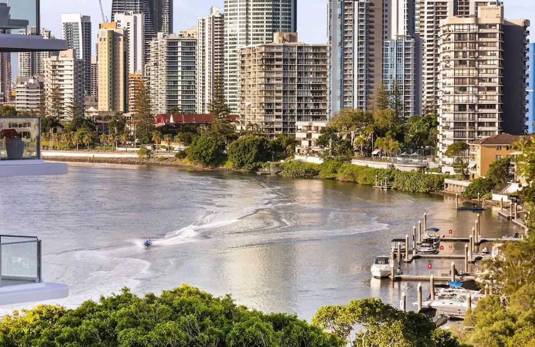 Das Apartment Luxury Sub-Penthouse With Stunning River Views, Walk To Beach Gold Coast befindet sich im Stadtteil Surfers' Paradise, in einer 25 Gehminuten Entfernung vom Pacific Fair Shopping Centre. In den Apartments können die Gäste von einer Terrasse aus einen Küsten- Blick aufs Meer genießen.